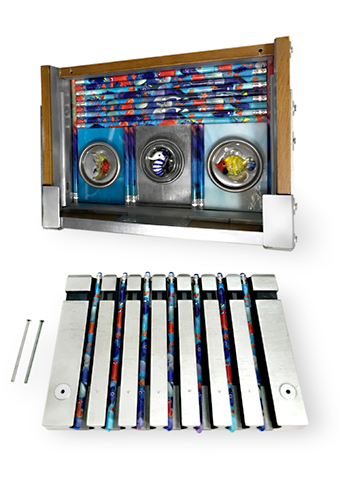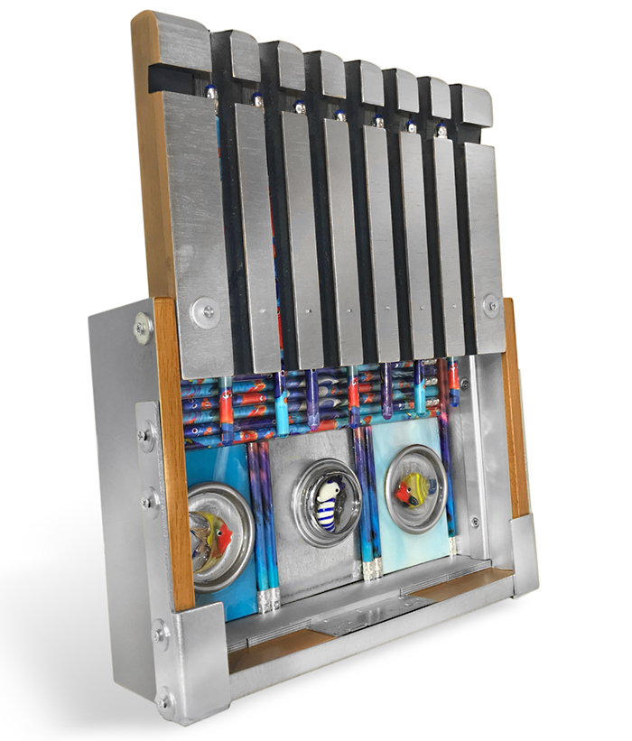 The artwork is also a collapsible box and it can be displayed in several different ways: sitting on a table, upright or closed. |