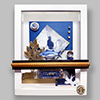 Title: Camminando con cautela (non troppo) - Treading (not so) carefully - Bianco Series Assemblage with found objects and repurposed materials 19x14x2.5in